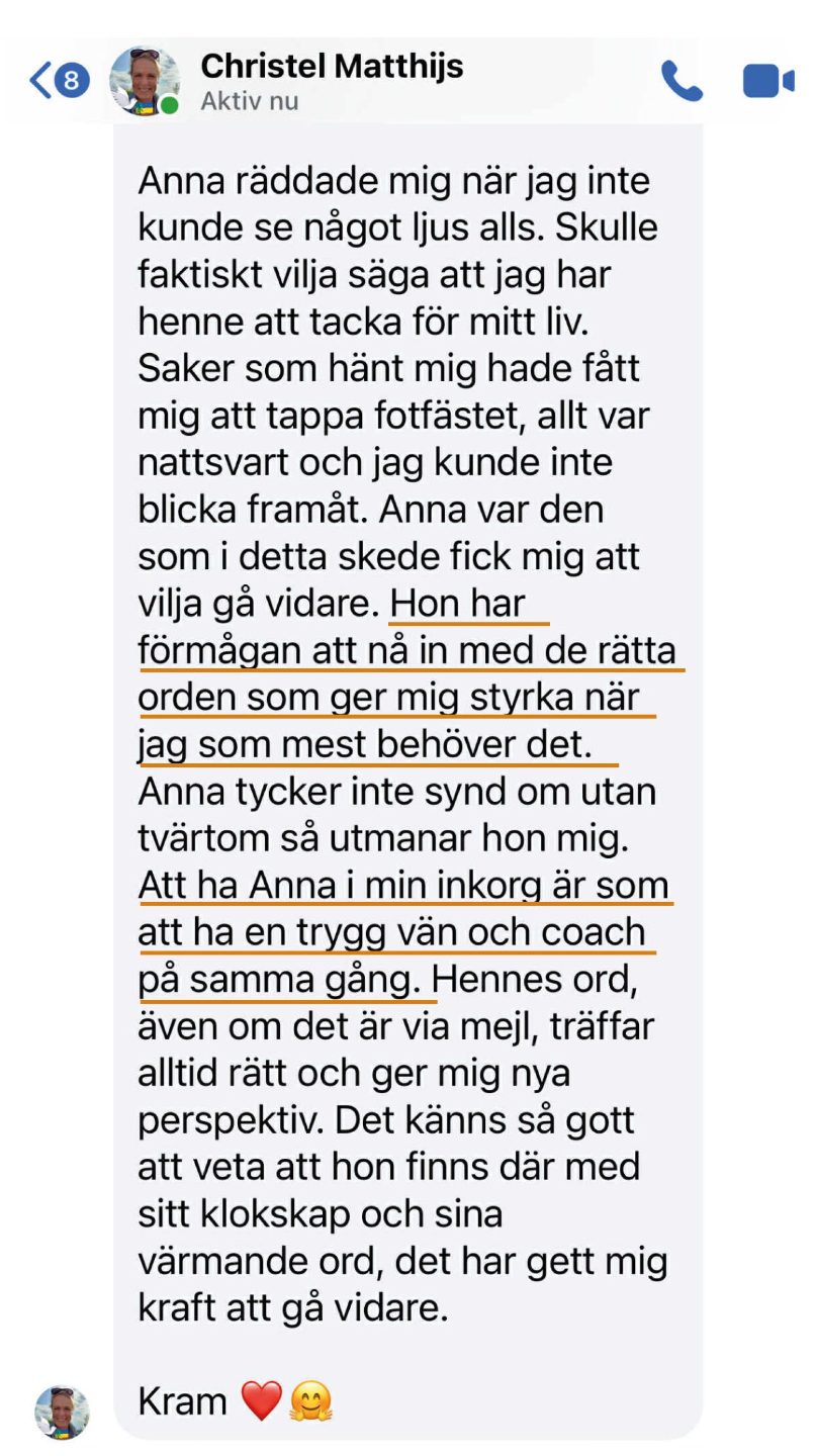 När du skriver till mig svarar jag alltid som människa, aldrig automatiserat. Med omtanke, erfarenhet och full respekt för där du befinner dig. Jag följer trådarna i det du delar, så du verkligen känner att någon tar emot det du kommer med.